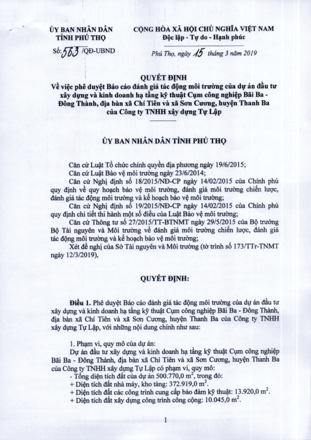 HỒ SƠ PHÁP LÝ CỤM CN BÃI BA - ĐÔNG THÀNH